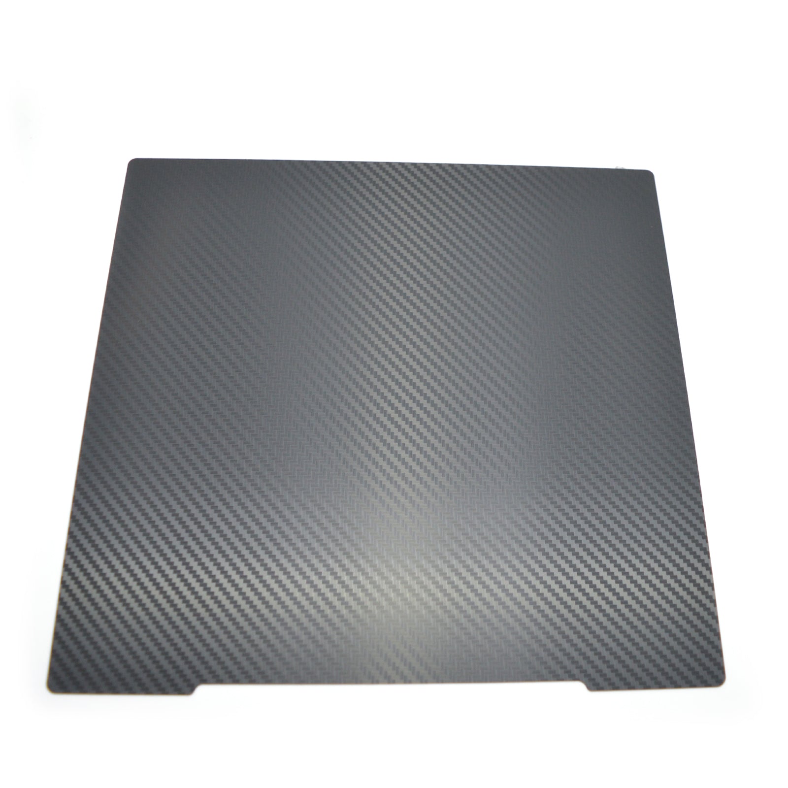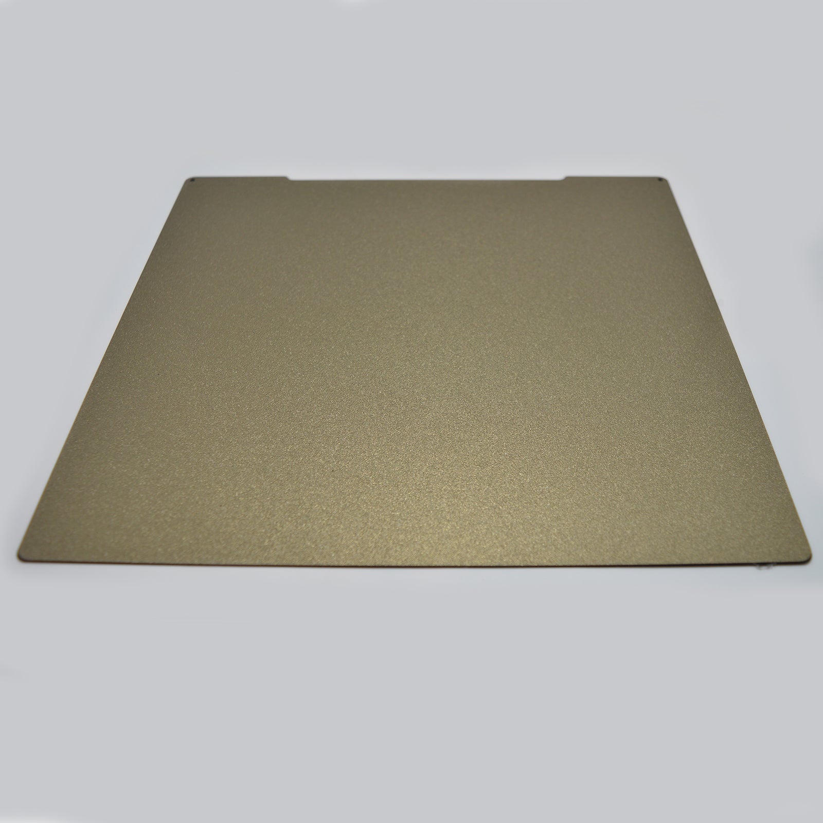 Meticulously engineered and tested by us and our partner factory, this textured steel sheet is forged from durable spring steel and layered with a PEI textured powder coating on one side, while the reverse side features a PET carbon fiber texture film. Designed to be sticky and to have great first layer adhesion across all filament types, the PEI coating boasts impressive resistance to temperatures up to 160°C, while the PET film remains steadfast up to 100°C."